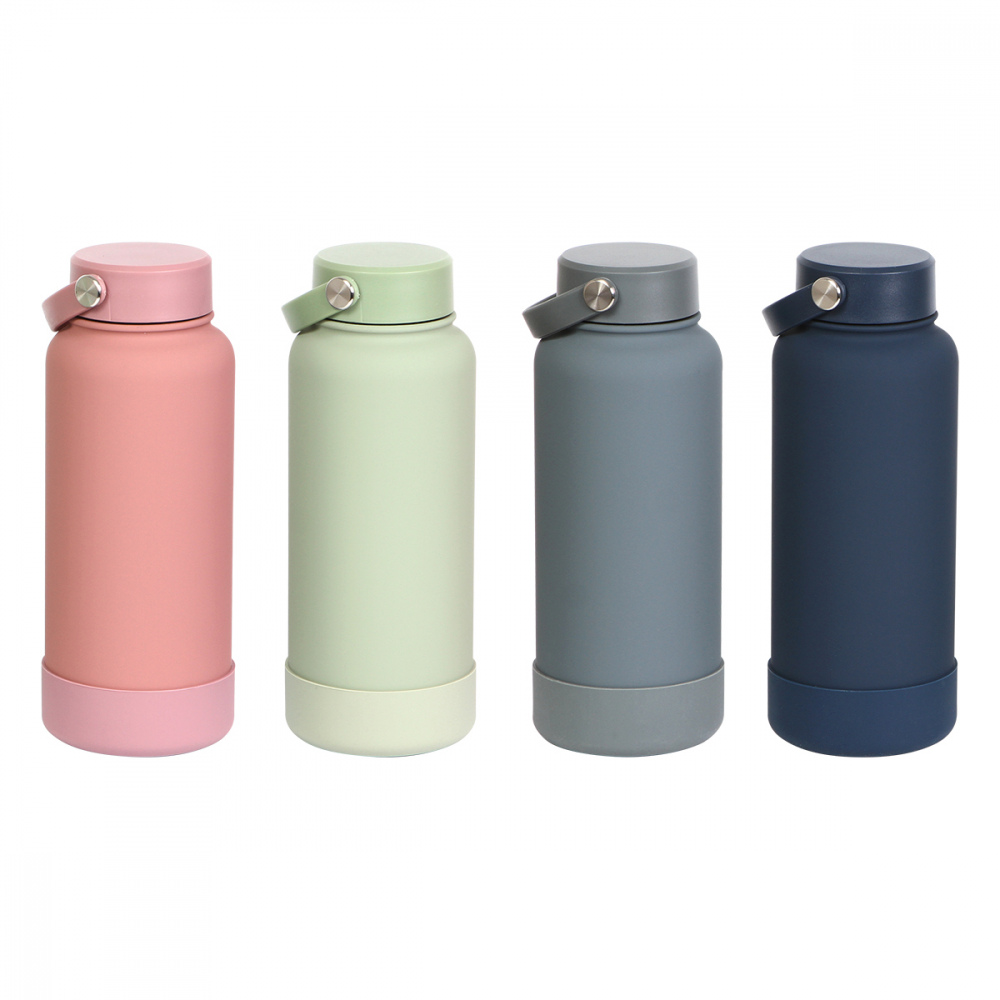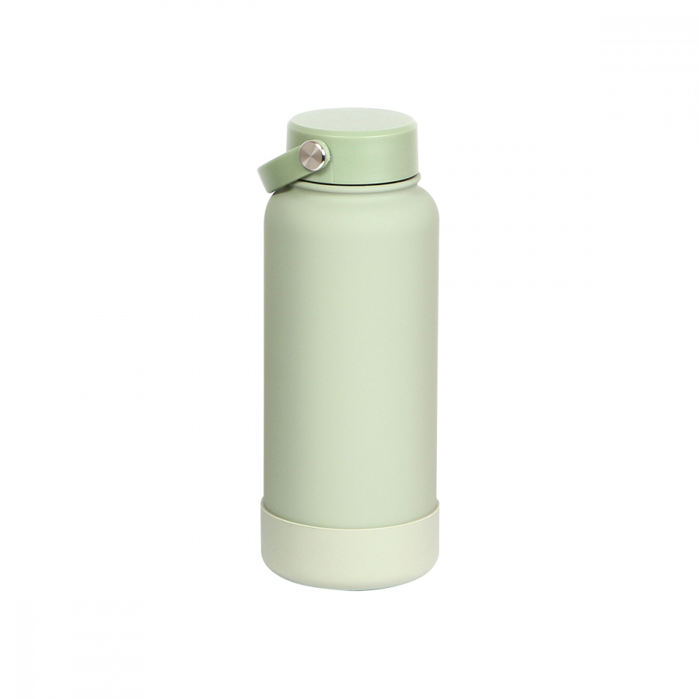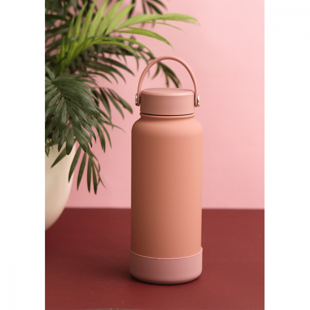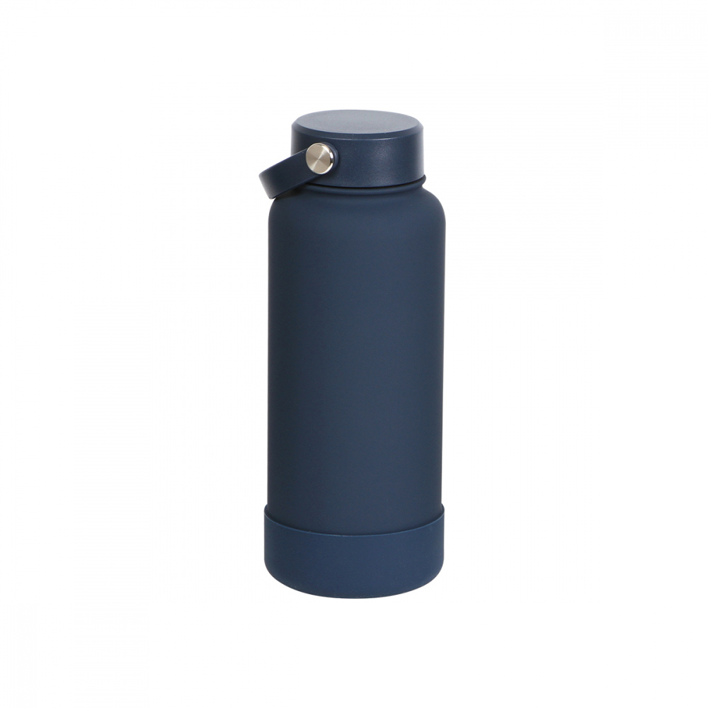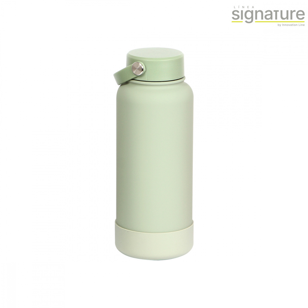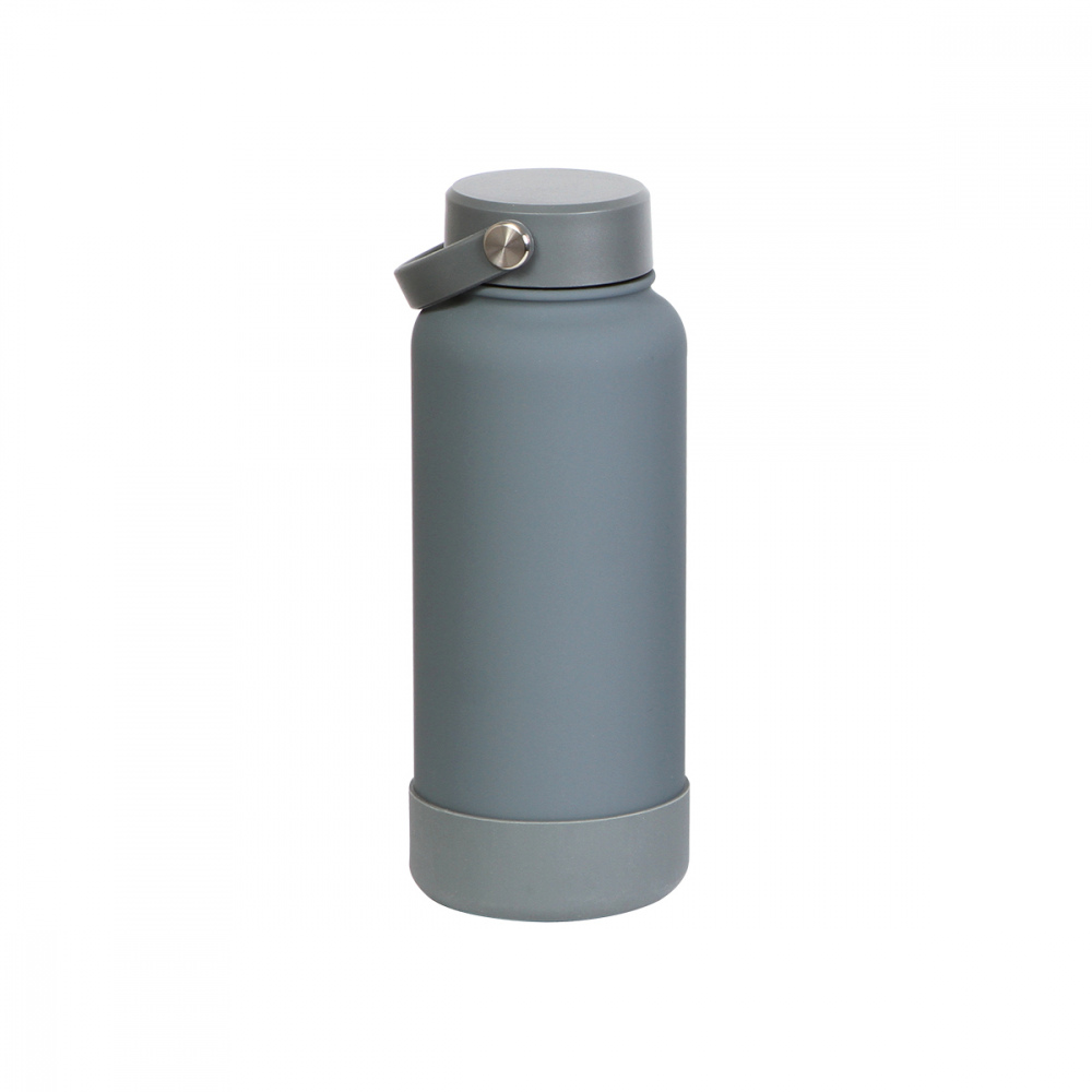 Termo con terminado rubber fabricado en acero inoxidable de 340 SS , manga de silicón antideslizante y asa plástica para su fácil traslado. Está fabricado en materiales de grado alimenticio y el acero inoxidable permite mantener tus bebidas frías o calientes por un largo tiempo. Capacidad de 1,000 ml. No usar en microondas.